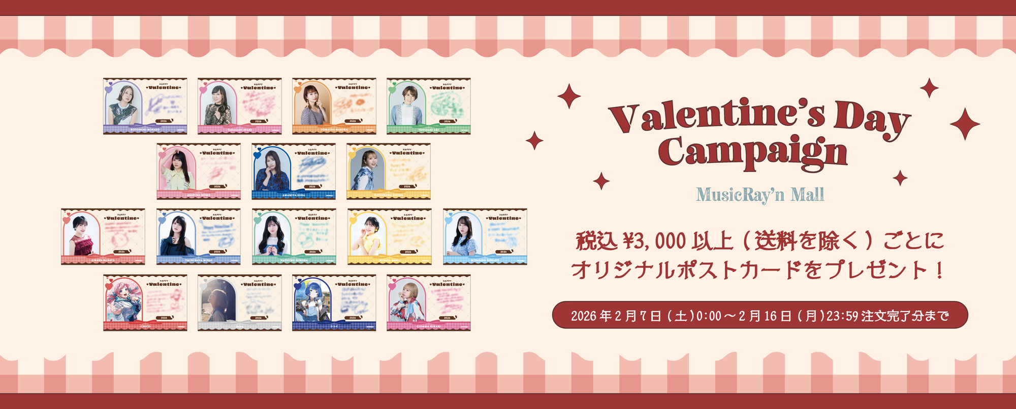 対象期間にミュージックレインモールにて税込 3,000 円以上(送料を除く)お買い上げごとにオリジナルポストカードをプレゼントいたします。