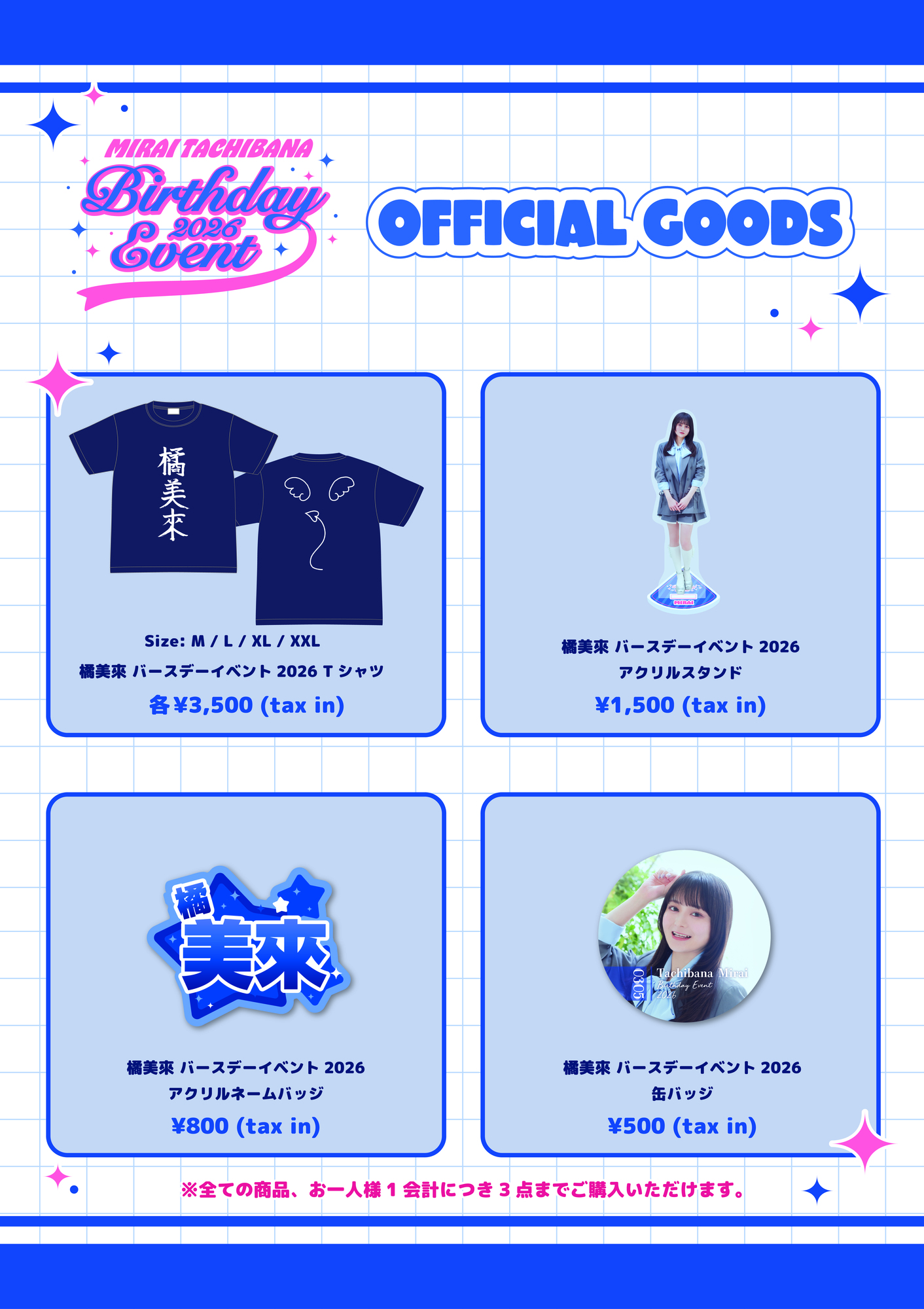 3月1日(日)に開催される「橘美來 バースデーイベント2026」でのオフィシャルグッズ販売が決定しました。